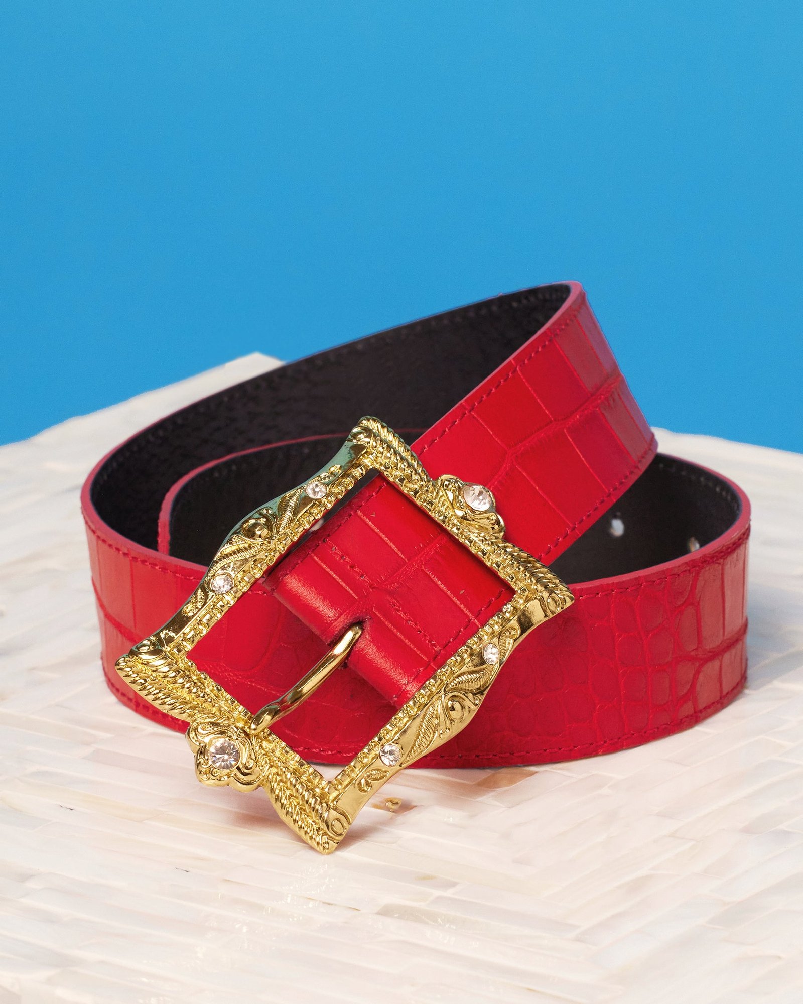 Blair Leather Belt in Croc-Embossed Red
